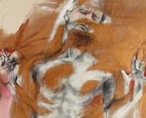 Painted turbulent swirling nudes - drawings are embraced with passion as they are molded into movement on paper, the nude form predominately male naked art becomes the focus of figurative erotica.