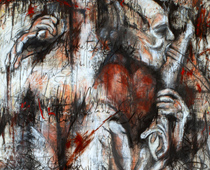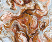 Painted turbulent swirling scratched nudes - drawings turned paintings are embraced with passion as they are molded into a delirium of movement. The nude form is saturated with color and calligraphic infusions. The art becomes the focus of figurative erotica.